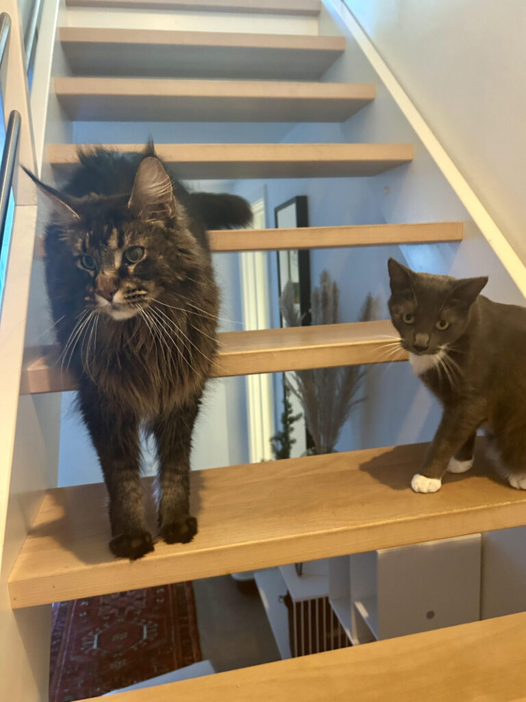 På internatet har vi en venteliste, og når vi sidder med katte som Bertha og Bodil, så ringer vi ofte også til folk herfra, hvis vi tænker, at de matcher kattene. Og der var et hjem, som vi mente kunne løfte opgaven. De blev kontaktet, og som de dyrevenner de er, sagde de ja og tog pigerne med hjem.
