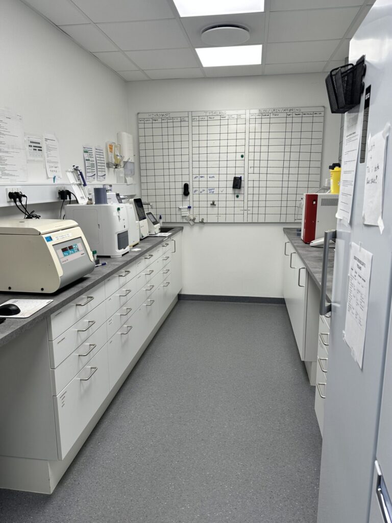 Vi har et fuldt udstyret Idexx-laboratorium på klinikken, hvilket betyder, at vi kan analysere de fleste blodprøver direkte hos os. Det giver os mulighed for hurtigt at stille en diagnose og komme i gang med den rette behandling.